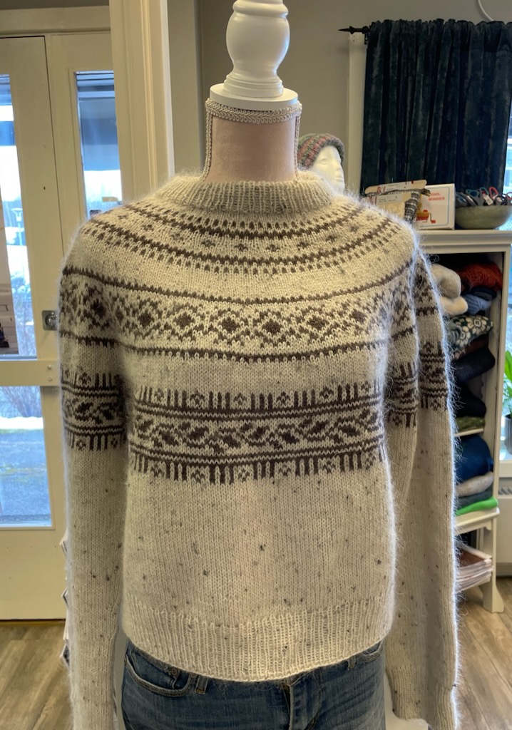 Carly sweater strikket i Viking alpakke bris Designet av House of Yarn